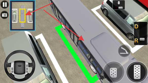 3、停车环节,看小地图,用方向盘控方向,绿色路线是引导,慢打方向、轻踩油门,避周围车辆(如银色SUV),按D/R切换前进后退,精准入位。