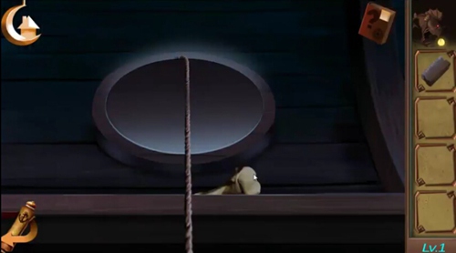 2、圆形舱口用“绳索+木棍”!组合道具,木棍绑绳索,放舱口,点互动拉上来,可能掉“钥匙”,遇到机关。