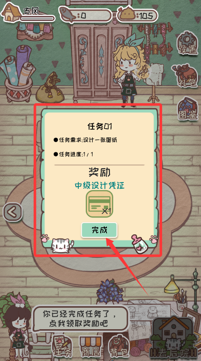 3、成功达成任务目标后,就能获得专属设计凭证作为奖励。