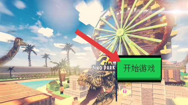 1、呈现像素风格的摩天轮、恐龙等元素,有【开始游戏】交互按钮,属于创意搭建玩法下的自定义地图内容,玩家可进入此地图展开冒险探索。