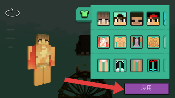 2、展示了可更换的皮肤款式,有“应用”按钮用于确认更换皮肤,体现游戏中自定义角色外观的玩法。