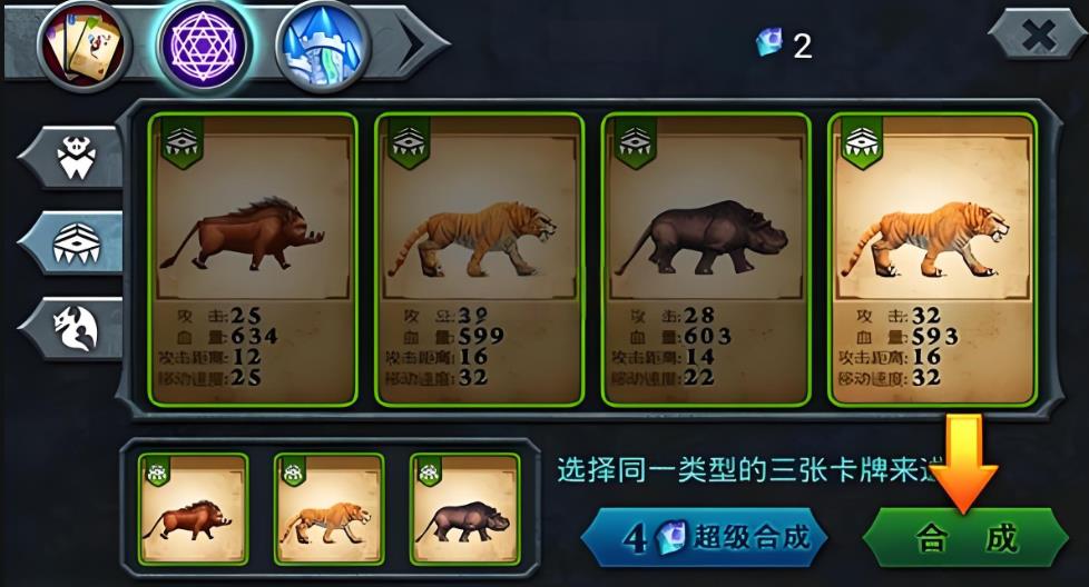 3、选定三只野兽后,点击合成按键,静候片刻,即可获得一只全新且强大的野兽。