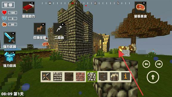 2、收集材料,搭建建筑,召唤坐骑,利用二段跳,探索像素世界。