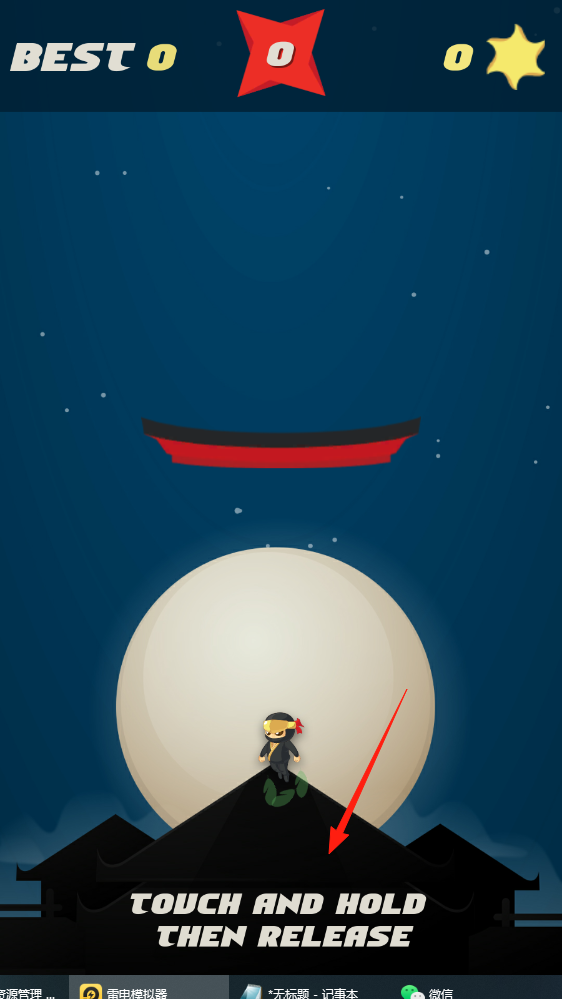 1、长按屏幕蓄力,松开让忍者跳跃,越过障碍,获取积分推进关卡。