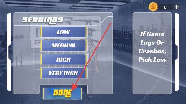 1、在设置界面,根据设备性能选择画质,选好后点击【DONE】保存设置,让游戏流畅运行。