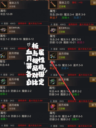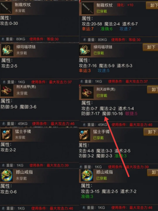 1、对比装备属性,选高攻击防御的穿戴,强化已穿装备提升战力。