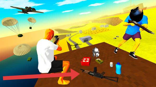 3、搜刮阶段,靠近武器(箭头指向),拾取装备,搭配急救包等物资,提升生存战力,备战决赛圈。