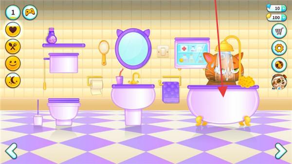 1、先点浴室花洒!给猫洗澡,洗前拿架子上香波,搓出泡泡,3秒洗完,别让猫湿太久,心情值+20,解锁新沐浴玩具,超萌。
