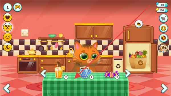 3、多元小游戏系统:包含三十多个有趣小章节,如捕捉、猫咪连线、寻找猫咪、数字合成、猫咪涂色等,通过游玩获取食物和金币,为虚拟宠物猫兑换物品。