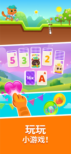 3、寓教于乐设计:以可爱的卡通形象和简单操作吸引儿童,在照顾宠物过程中培养责任感,通过小游玩锻炼思维能力,兼具娱乐与教育意义。