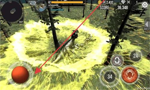 2、遇甲龙别正面刚!绕到侧面咬尾巴,它背甲硬,技能条满了,用冲刺咬(右二图标),秒掉它。