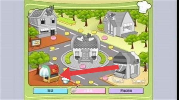1、呈现了小镇场景,有房屋、街道、店铺等元素,下方有“商店”“开始游戏”等按钮,属于模拟经营类的初始界面。