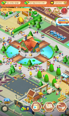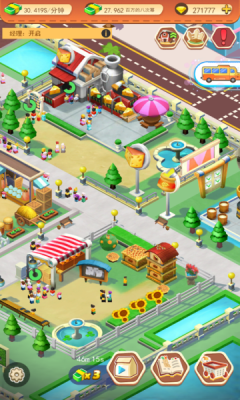 1、呈现了城镇建设、设施(如建筑、绿化、游乐设施)等内容,玩家可在其中进行城镇规划、经营管理等操作。
