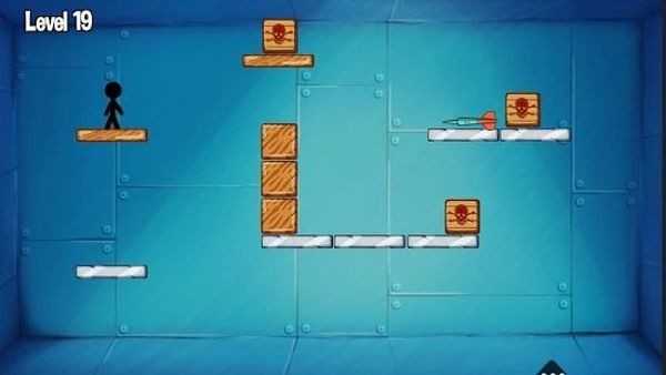 2、环境观察利用:观察火柴人周围环境,通过反弹武器子弹等方式,绕过箱子等障碍成功击中目标。