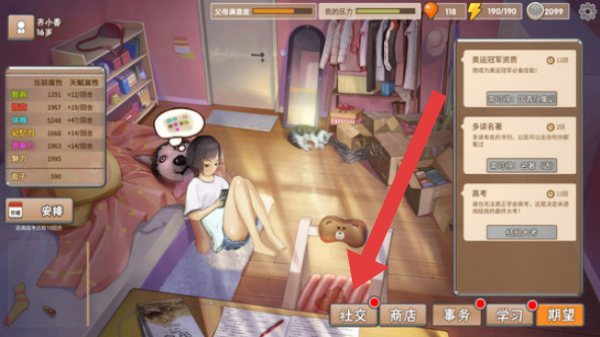 1、点击【社交】,进入《中国式家长》社交系统,查看同学、羁绊,拓展人际关系,提升社交属性。