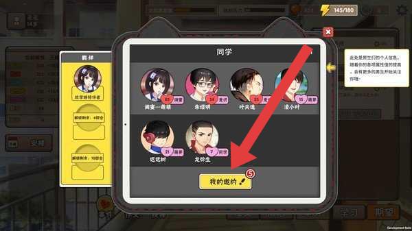2、在同学页,点【我的邀约】,管理约会邀请,选择同学互动,增加好感,推进社交剧情。