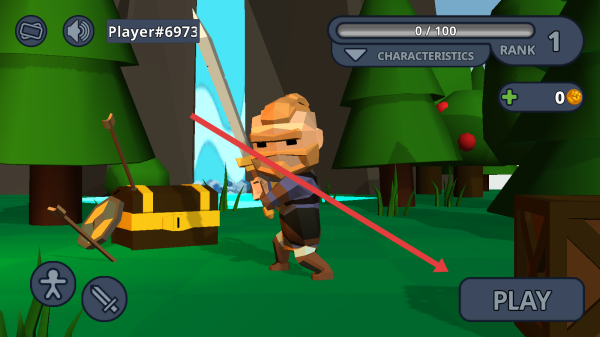 1、点击【PLAY】,操控“Player#6973”,进入森林场景,开始冒险,目标击败敌人,提升RANK。