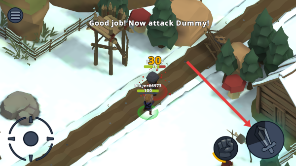 3、遇到Dummy,点击右侧剑图标,攻击训练假人,完成“Good-job!”任务,积累战斗经验,升级角色。