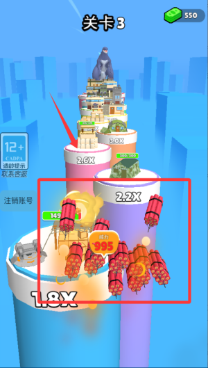 2、限时挑战玩法考验操作,在倒计时内完成指定破坏目标。全球排行榜实时更新,争夺最强爆破专家称号。