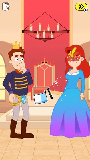 1、在宫廷场景,观察国王、戴面具角色与破碎物品,点击互动关键道具,推动剧情,解开当前场景谜题。