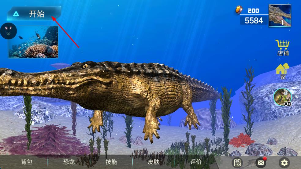 1、进入游戏后操控巨鳄在珊瑚礁区域游动,通过点击屏幕锁定猎物,长按屏幕蓄力发动突袭,完成首次捕食教学。