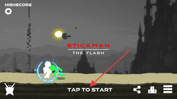 1、在游戏初始界面,点击【TAP TO START】,进入【STICKMAN THE FLASH】的火柴人跑酷战斗,开启高速冒险。