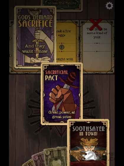 1、通过卡牌选择收集食物、信徒等资源,别让饿疯的信徒把你当晚餐。