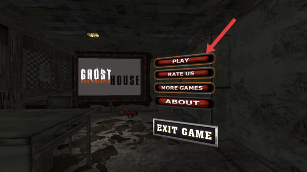 1、在游戏鬼屋邪恶射手的主界面,操控者需要点击【PLAY】的按钮,进入游戏加载的流程。