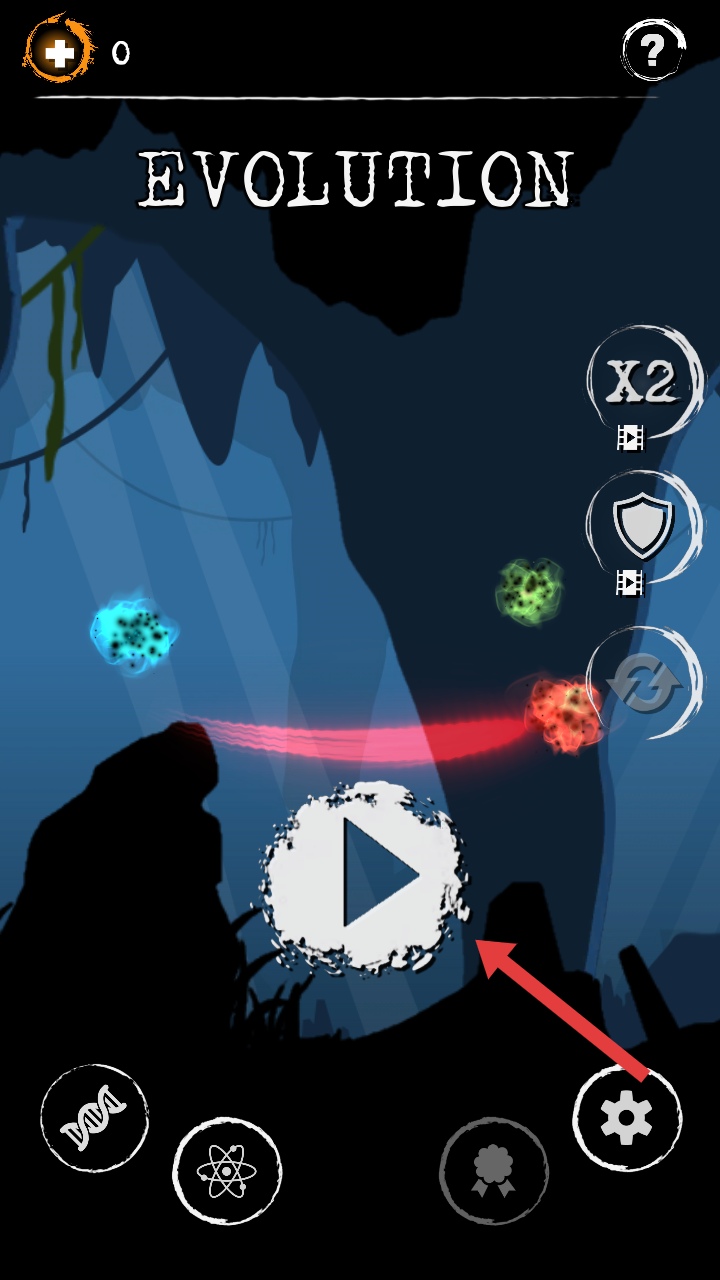 1、进入游戏主界面,点击中间带有播放标识的白色按钮,开启邪恶进化黑暗轨道的冒险之旅。