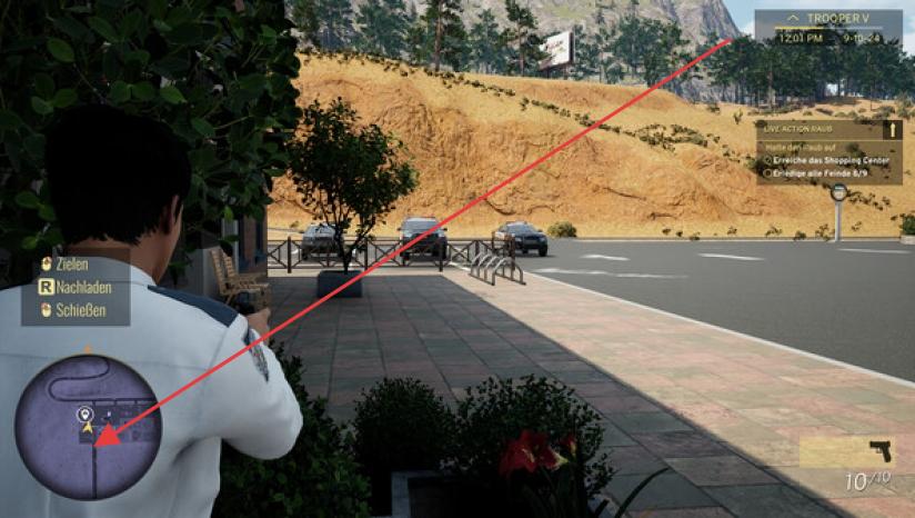 3、点“地图标记”!任务提示后,看小地图红标,快速赶去,到现场先掩体(树后、车旁),再瞄准,3枪内制敌。