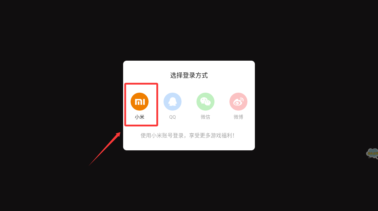 1、点击橙色小米图标登录,享受专属游戏福利。