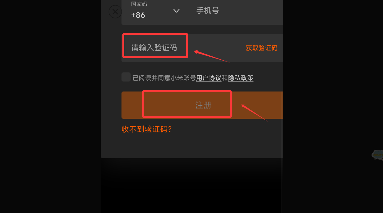 3、填写验证码并勾选协议,点击注册完成账号创建。