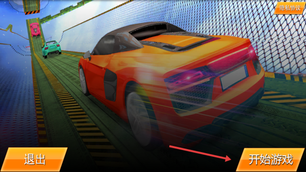 1、在赛车准备界面,点击【开始游戏】,驾驶跑车挑战高空特技赛道。
