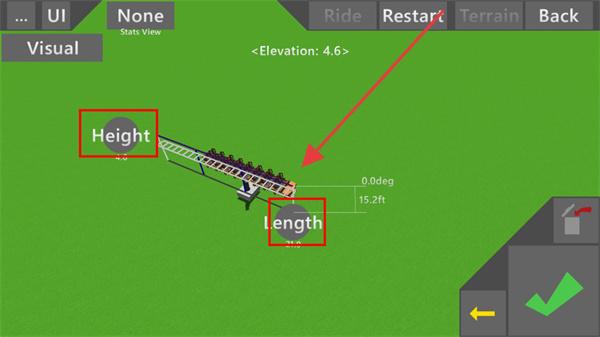 2、调“Height”和“Length”!先拉长度到15.2ft,再升高度到4.6,比例1:3,过山车俯冲感足。