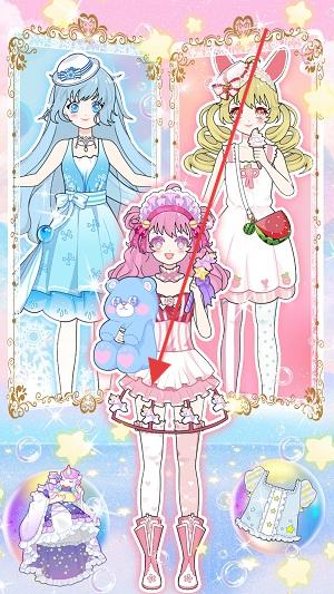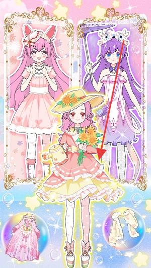 1、优先搭“粉色系”!选中间粉发角色,点左下角洛丽塔裙,3秒穿上,萌系值+20,再配粉靴,风格统一。