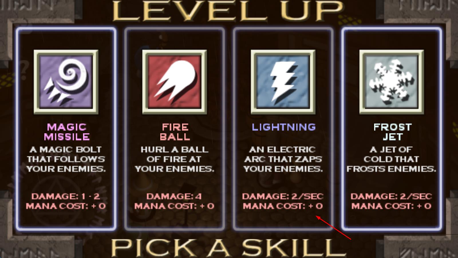 2、游戏中途,在攀爬高塔过程中收集金币与魔法物品,通过消灭敌人获取经验值,加点解锁新技能,应对僵尸、小鬼等更强大的敌人与随机地牢挑战。