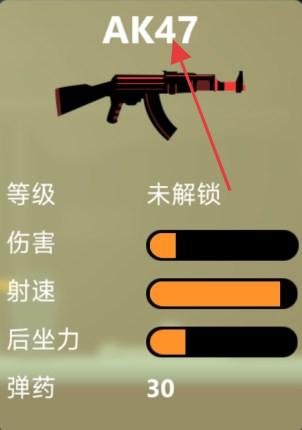 1、【AK47】伤害高射速可,后坐力稍大,备弹30,满足解锁条件后可获,适合中距离作战。