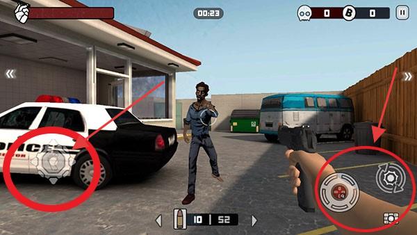 3、进入关卡之后就可以开始闯关,屏幕左边是控制人物移动的按钮,屏幕右边是攻击、换弹、换武器按钮,控制人物击败丧尸即可过关。