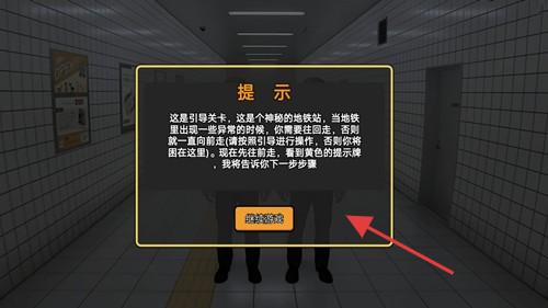 1、在地铁场景选引导关卡,跟随提示行动,按规则操作,探索神秘区域。