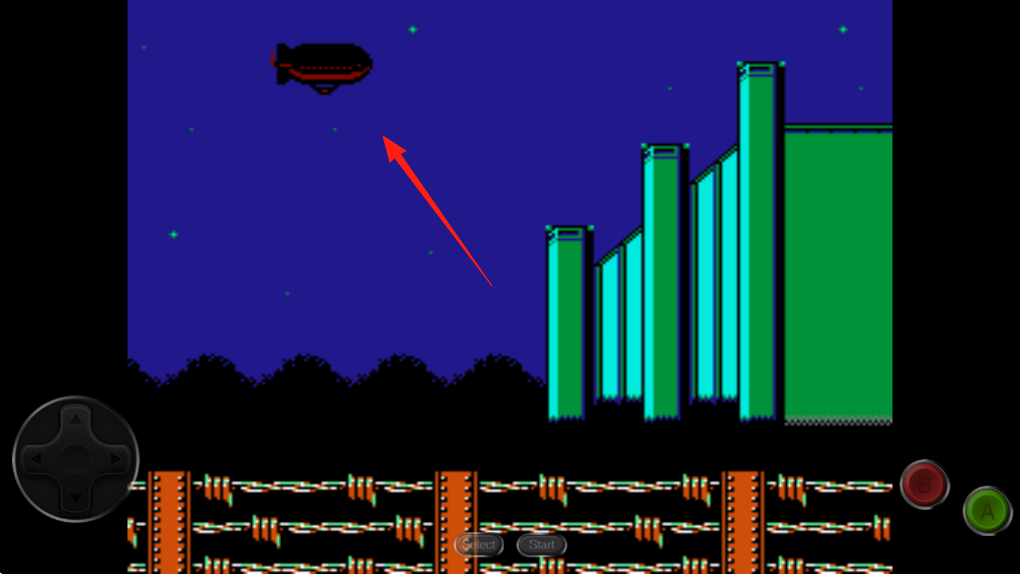 2、移动角色,观察空中飞艇,调整方向,跨越障碍,探索夜景区域。