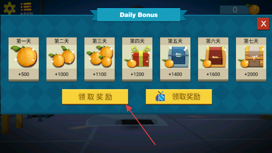 1、进入日常奖励界面,根据累计天数,点击对应按钮,领取橙子奖励。