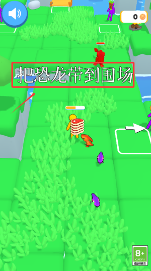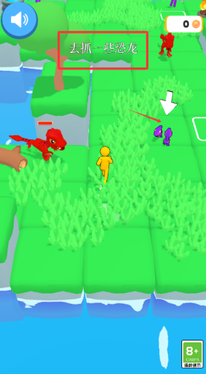 2、操控黄色小人移动,按提示抓捕周围恐龙。