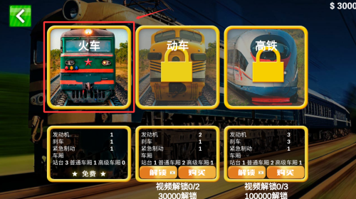 2、选择免费火车或解锁高铁,查看右侧购买条件。