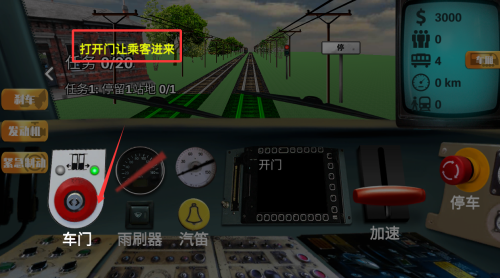 3、按车门按钮让乘客上车,完成0/20任务进度。
