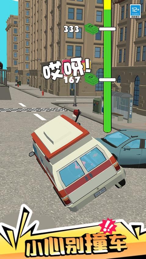 1、基础驾驶操作采用简单的一键加速模式,通过长按屏幕控制车速,松手减速,适合快速上手,掌握时机才能获得高分。
