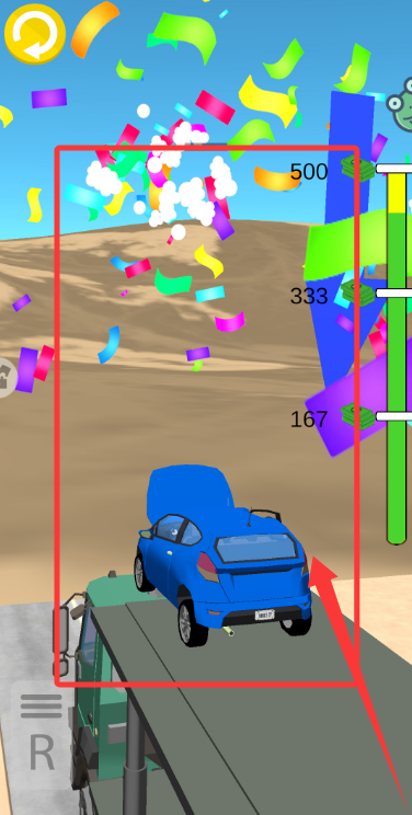 3、汽车成功登上货车平板后,触发五彩纸屑特效,即完成本关卡挑战。