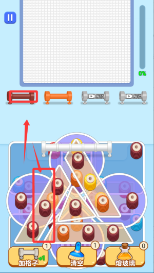 1、进入关卡后先看清目标图案和所需颜色,找到三个相同颜色的毛线圈进行消除。