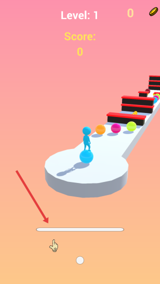 2、彩球收集:跳跃途中,让角色接触橙色、粉色等彩球,积累收集。