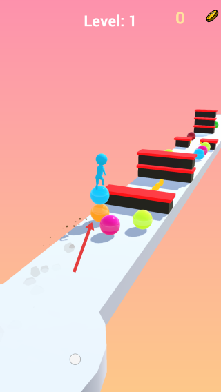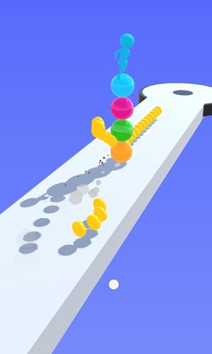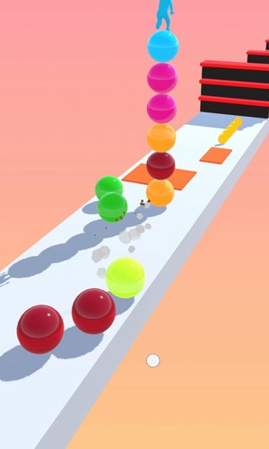 3、球球资源管理:收集跑道上的彩色球可增加堆叠高度,金色球触发“暴走模式”加速前进,炸弹球能摧毁前方障碍。