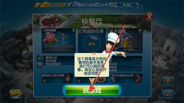 3、点“玩游戏”!快餐厅任务,优先做“烹饪香肠”,每根赚20,升级厨房(花1000金币)。